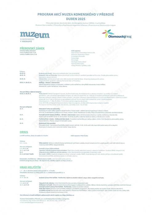 Úvod > Život v obci > Aktuality > Program Muzea Komenského v Přerově na měsíc duben 2025